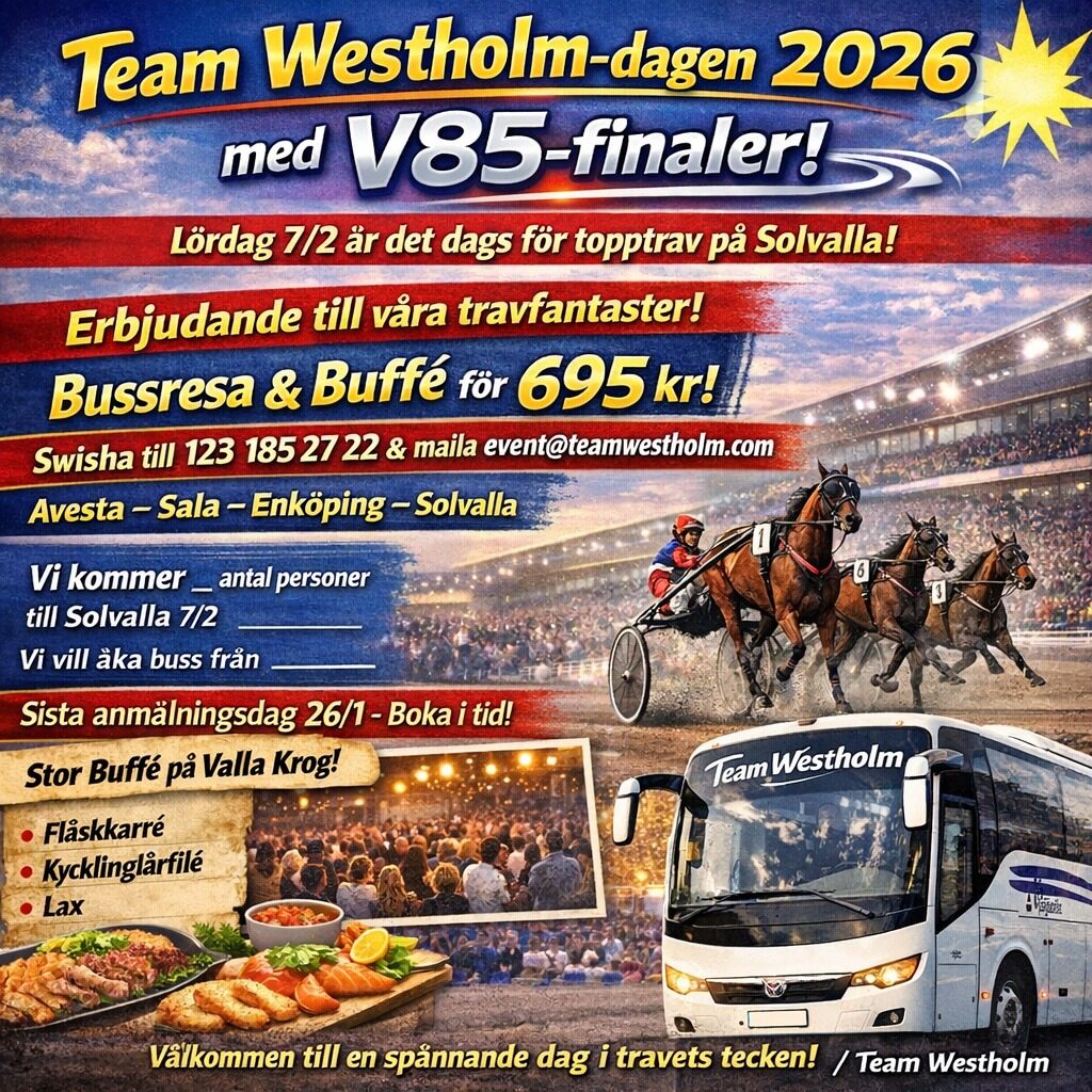 Team Westholm-dagen 2026 med V85-finaler! Lördag 7/2 är det dags för topptrav på Solvalla!